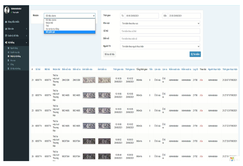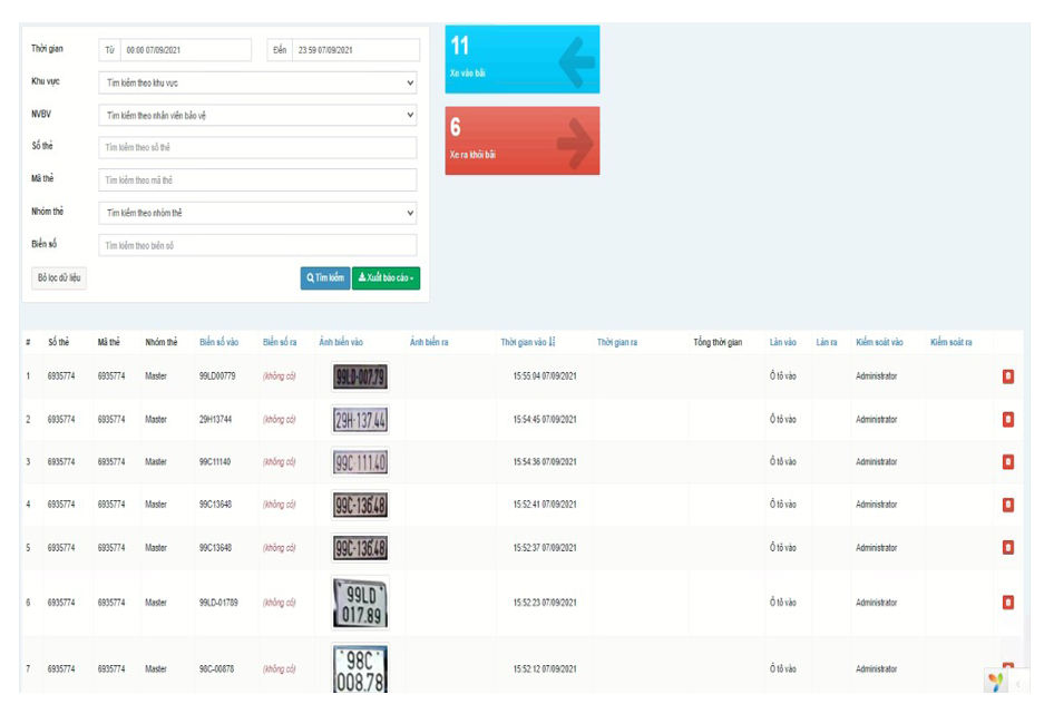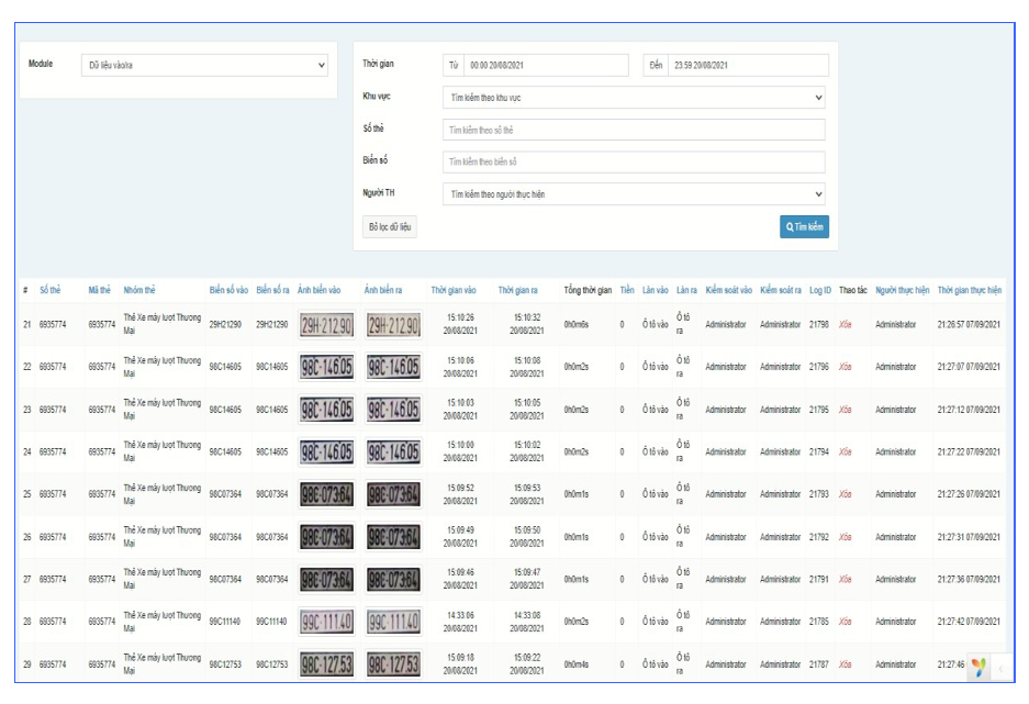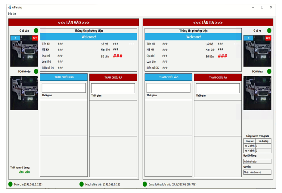 * Lưu trữ dữ liệu về các phương tiện ra vào bãi giữ xe.