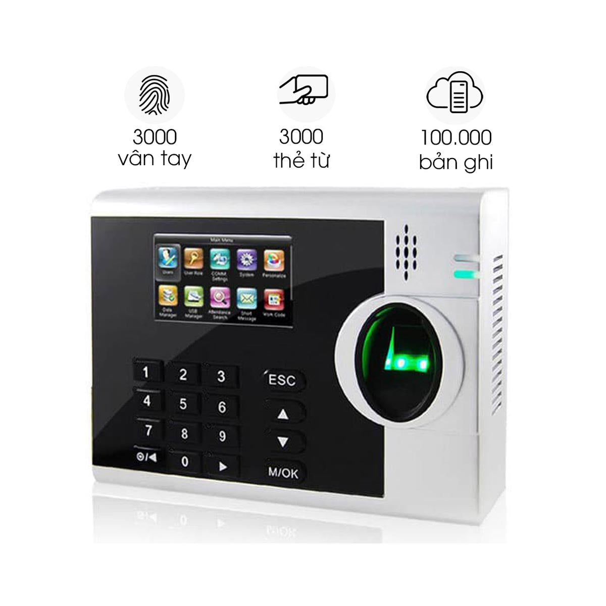 - Dung lượng lớn: Có thể lưu trữ lên đến 3000 dấu vân tay, 3000 thẻ và 100.000 bản ghi chấm công, phù hợp với các doanh nghiệp có quy mô lớn.