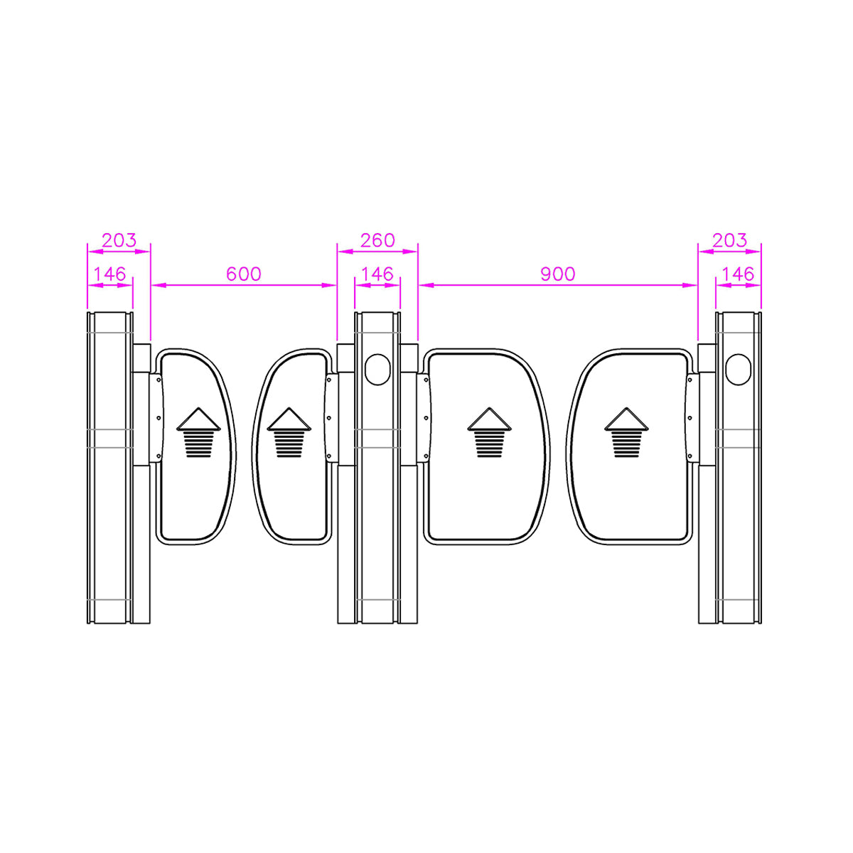 - Thiết kế thông minh: Đáp ứng mọi nhu cầu dự án nhờ khả năng tùy chỉnh linh hoạt về kích thước, độ rộng làn và chiều cao cánh cửa.