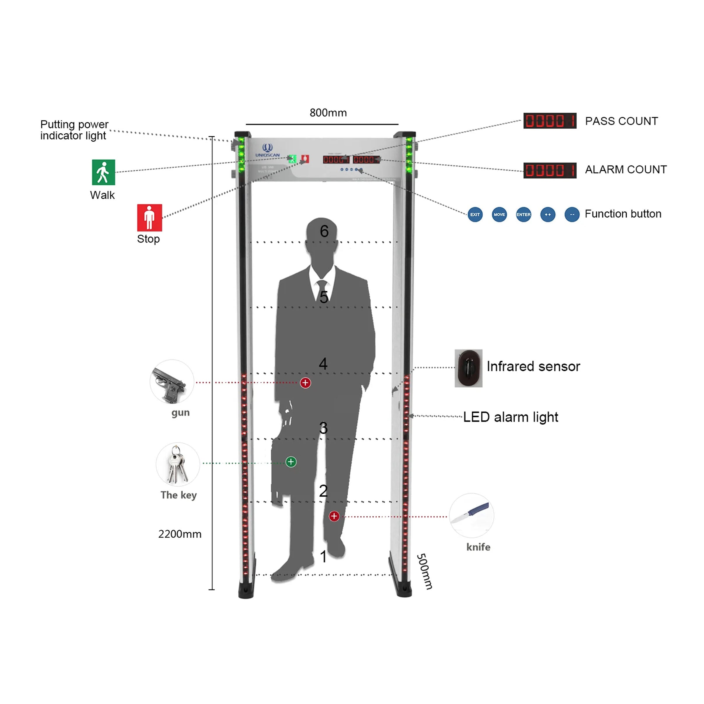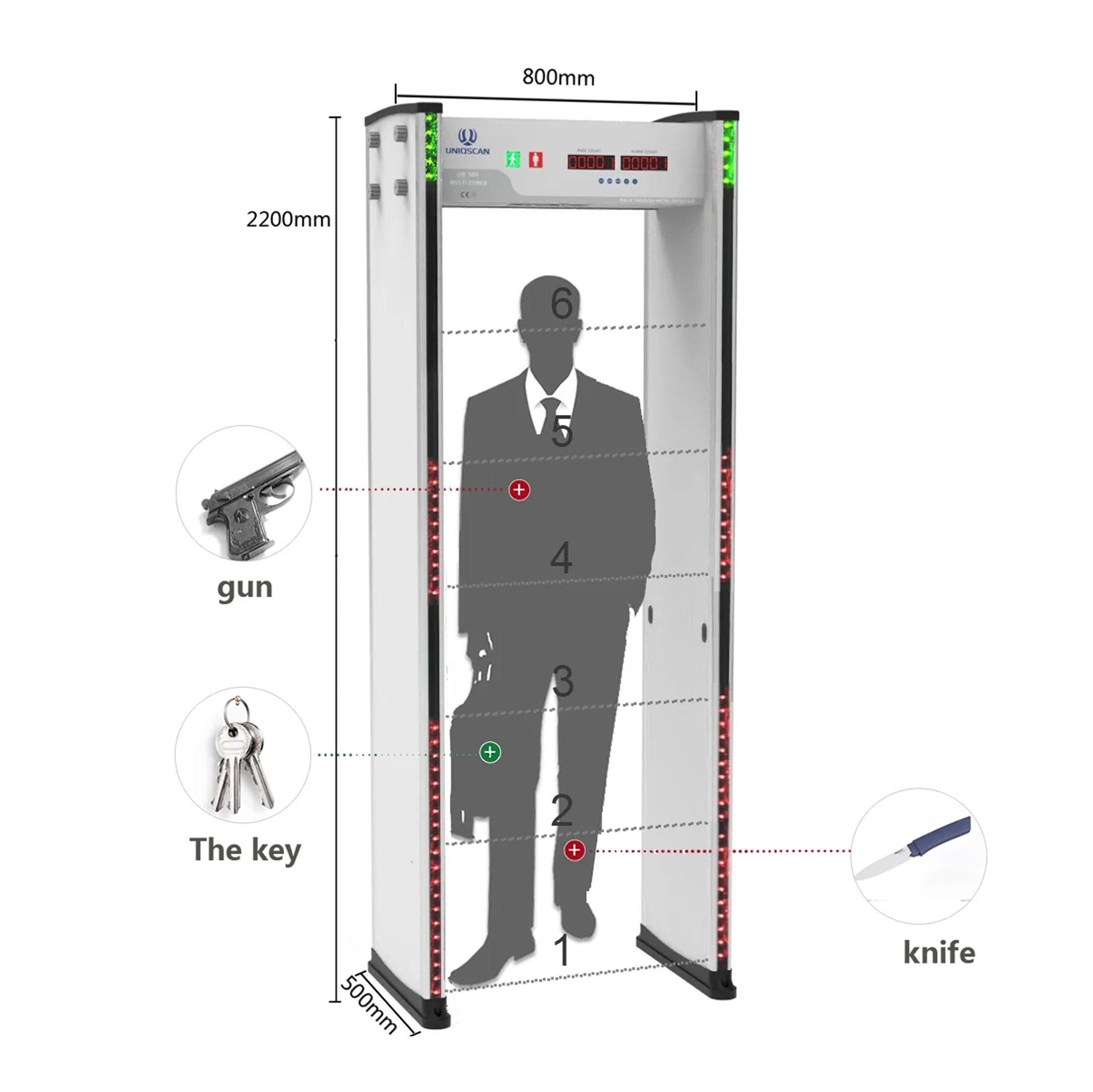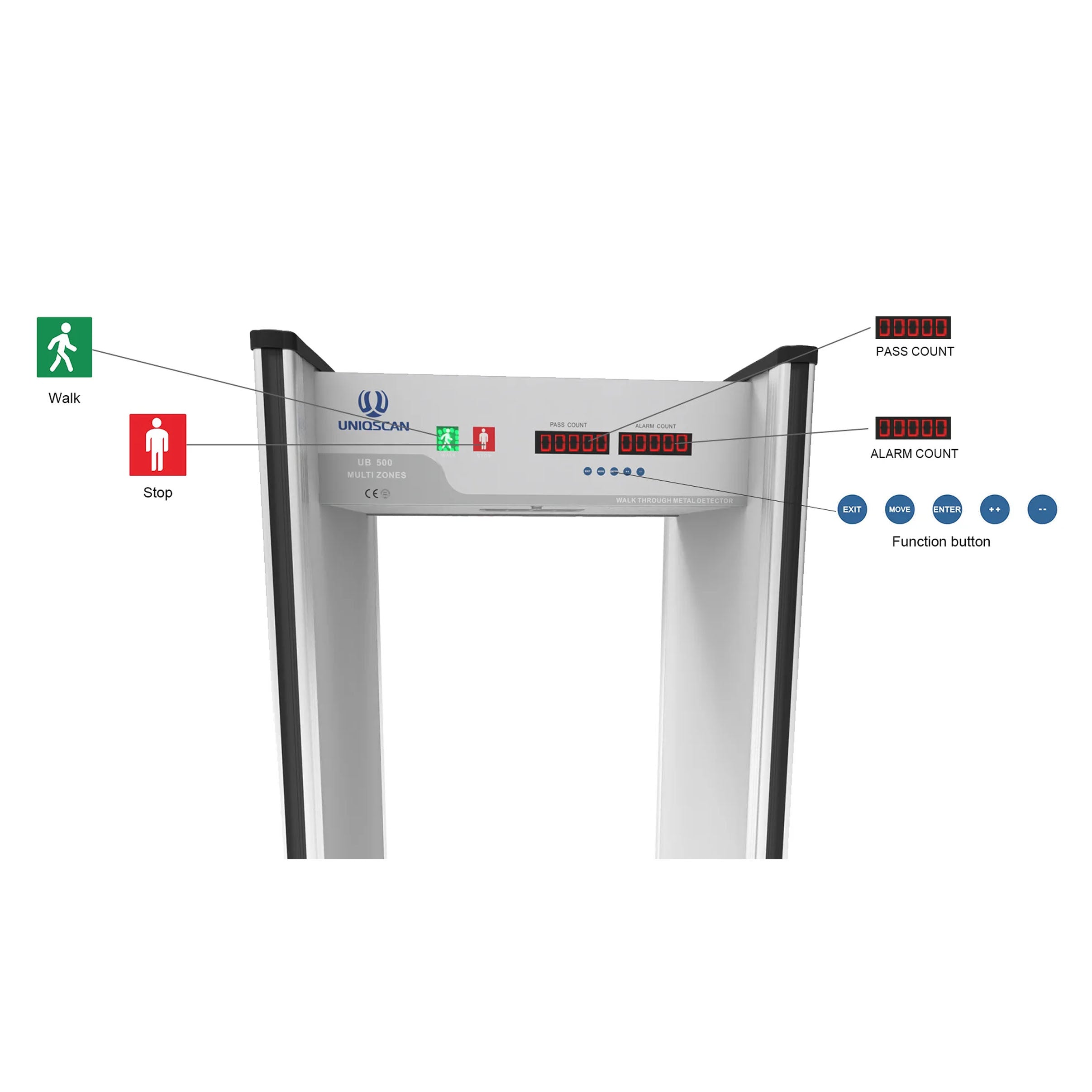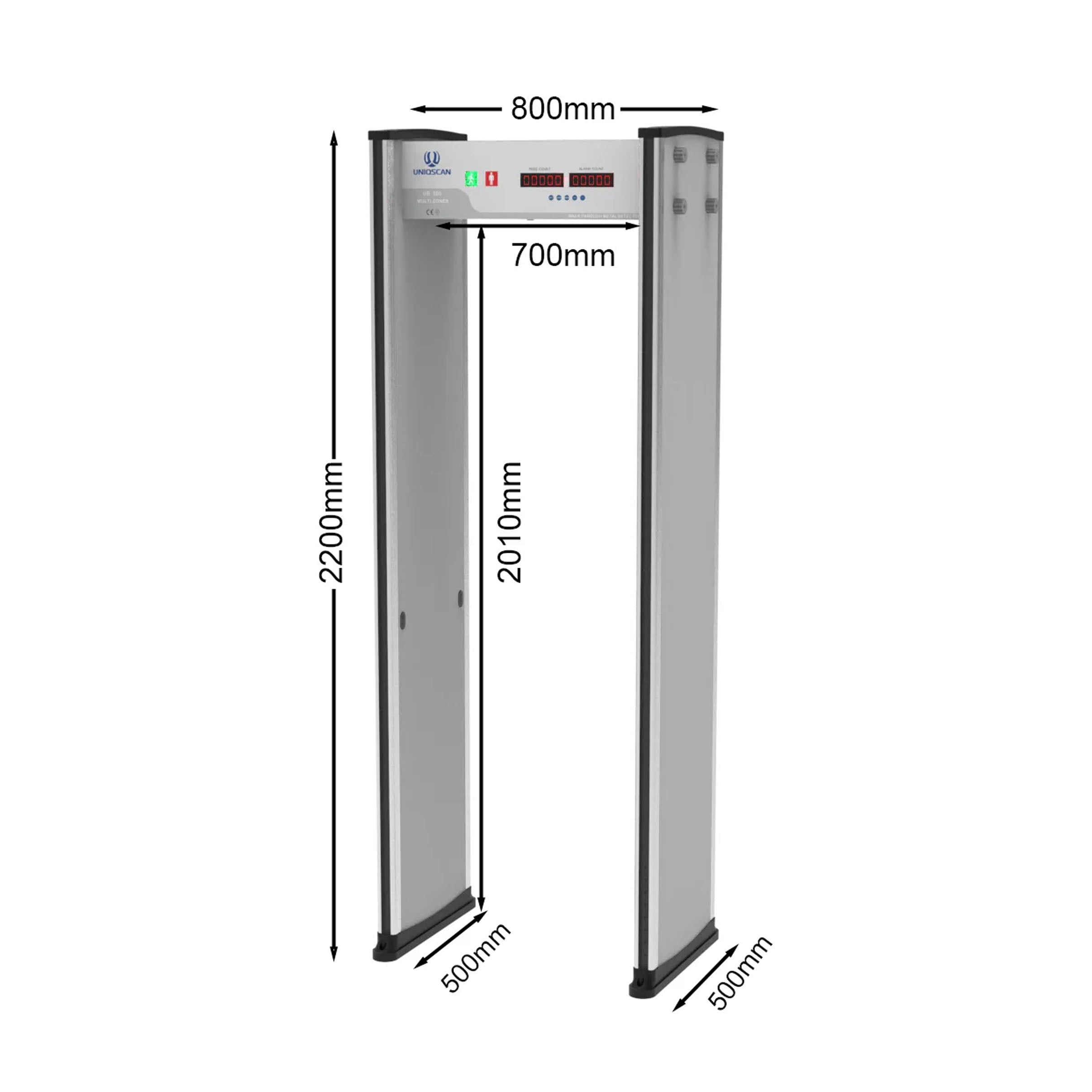 Uniqscan UB500 là thiết bị cổng dò kim loại hiện đại với 18 vùng phát hiện và độ nhạy có thể điều chỉnh, mang đến khả năng phát hiện kim loại chính xác và nhanh chóng. Sản phẩm này được ứng dụng rộng rãi tại các sân bay, nhà ga, trung tâm mua sắm và nhiều khu vực kiểm tra an ninh khác. Với cấu trúc dò tìm sử dụng trường điện từ, Uniqscan UB500 dễ dàng phát hiện các vật thể kim loại giấu trong cơ thể, đưa ra cảnh báo bằng âm thanh và ánh sáng.