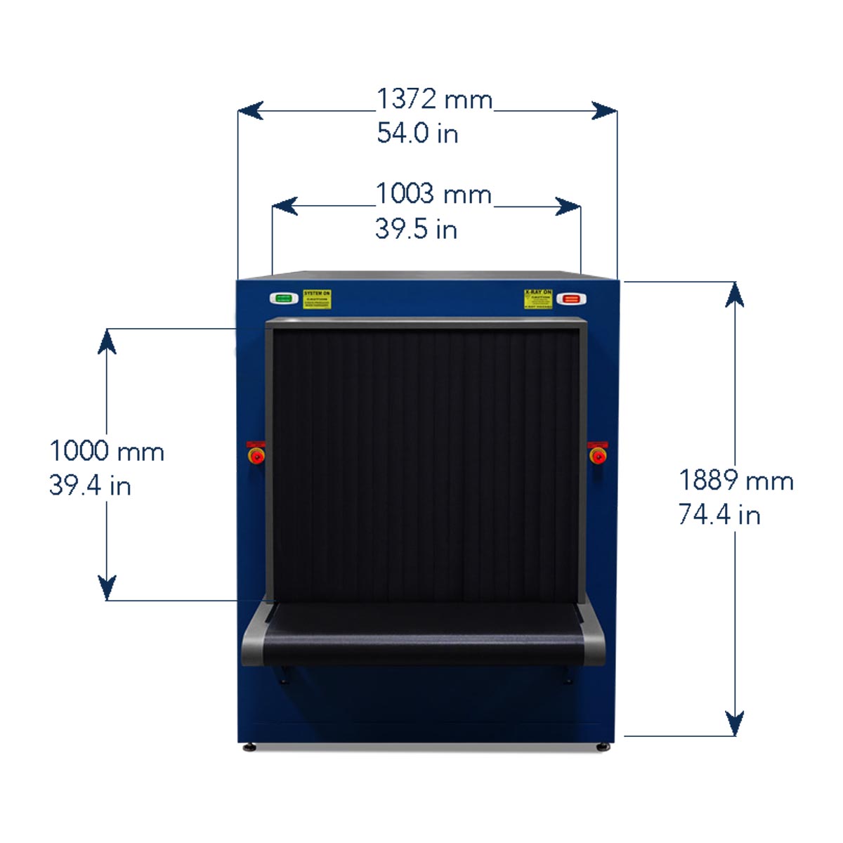 - Kích thước đường hầm lớn: XIS-100X™ sở hữu kích thước đường hầm 100.3 cm x 100.0 cm (39.5" x 39.4"), thích hợp để kiểm tra các kiện hàng, bưu kiện và hàng hóa cồng kềnh.