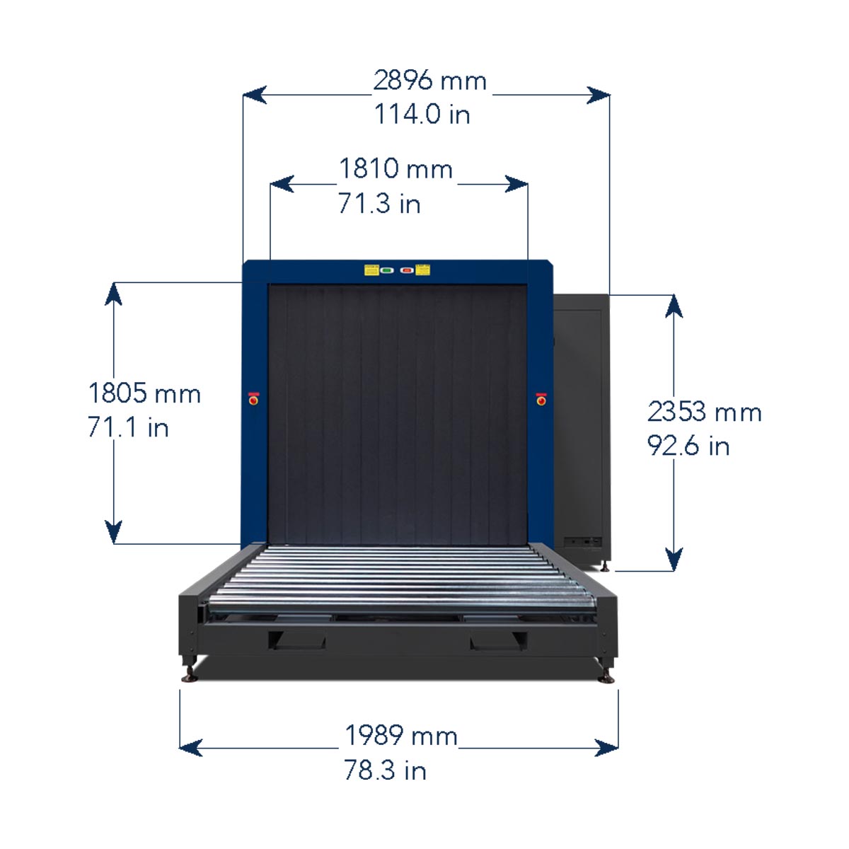 Kích Thước Khung Lớn: Với thiết kế khung lớn, máy có khả năng kiểm tra các hành lý và kiện hàng có kích thước lớn hoặc cồng kềnh. Điều này không chỉ nâng cao hiệu quả kiểm tra mà còn giúp giảm thời gian chờ đợi và cải thiện trải nghiệm của khách hàng.