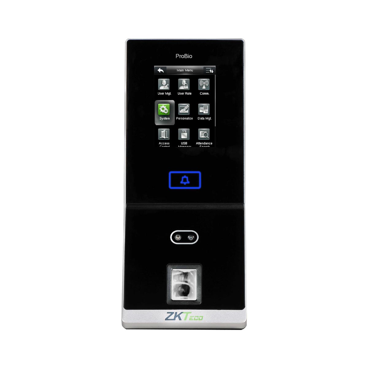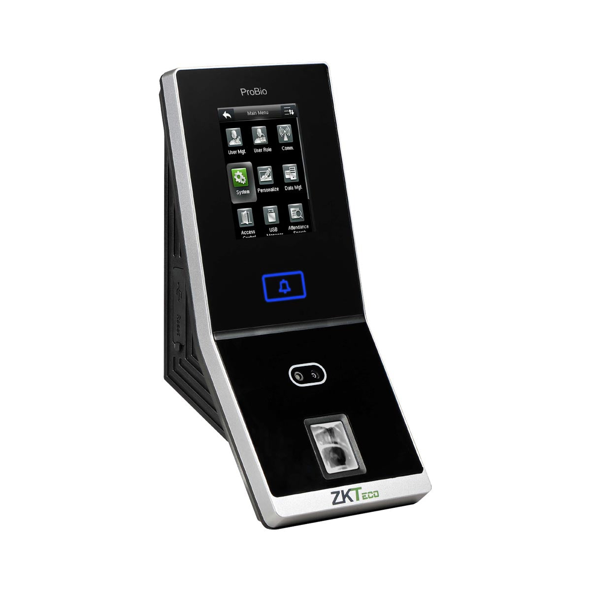 Máy Chấm Công Khuôn Mặt ZKTeco ProBio là thiết bị kiểm soát cửa áp dụng công nghệ nhận diện khuôn mặt và công nghệ SilkID cải tiến mới nhất. Thiết bị này không chỉ sở hữu khả năng nhận dạng vượt trội cho ngón tay khô, ướt và thô mà còn cung cấp mức độ an ninh tối đa bởi khả năng phát hiện ngón tay thật. ProBio có khả năng hoạt động tốt dưới nguồn sáng mạnh và tự động kích hoạt khi đưa ngón tay vào để tiết kiệm năng lượng.